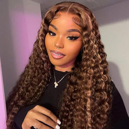 OQ HAIR Water Wave Highlight Ombre 4/27 Wear Go Glueless Wig Pre-cut 360 Lace Frontal Wig
