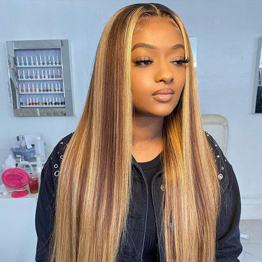 OQ HAIR Straight Highlight Ombre 4/27 Wear Go Glueless Wig 360 Pre-cut Lace Wig