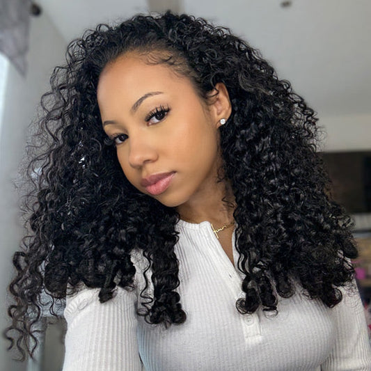 3 In 1 Half Wig | Burmese Curly Glueless Wear Go Half Wig With Elastic Drawstring Seamless Flip Over Wig