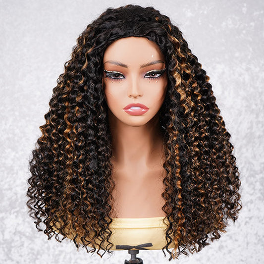 3 In 1 Half Wig | Water Wave Glueless Black Wig With Golden Brown Highlight Wear Go Half Wig