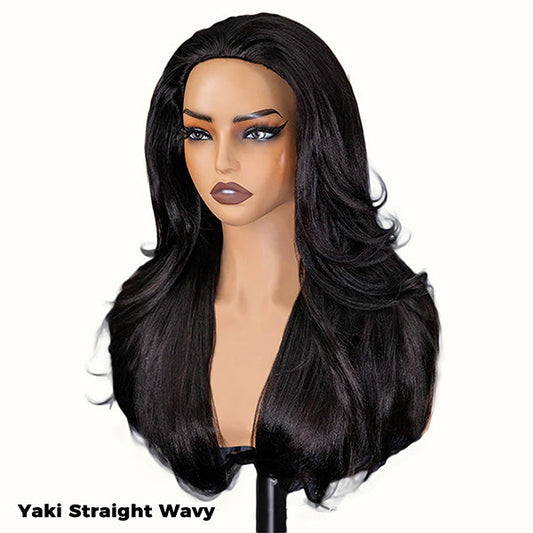3 In 1 Half Wig | Yaki Straight & Kinky Straight Wavy Pre-Style Wear Go Half Wig With Drawstring Invisible Hairline