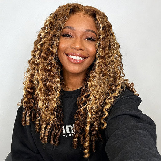 OQ HAIR Balayage Highlight Ombre Brown Water Wave Wear Go Glueless Wig With Natural Hairline