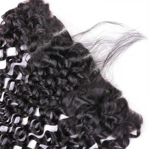Water Wave Human Hair 3 Bundles with 13*4 Lace Frontal Natural Black