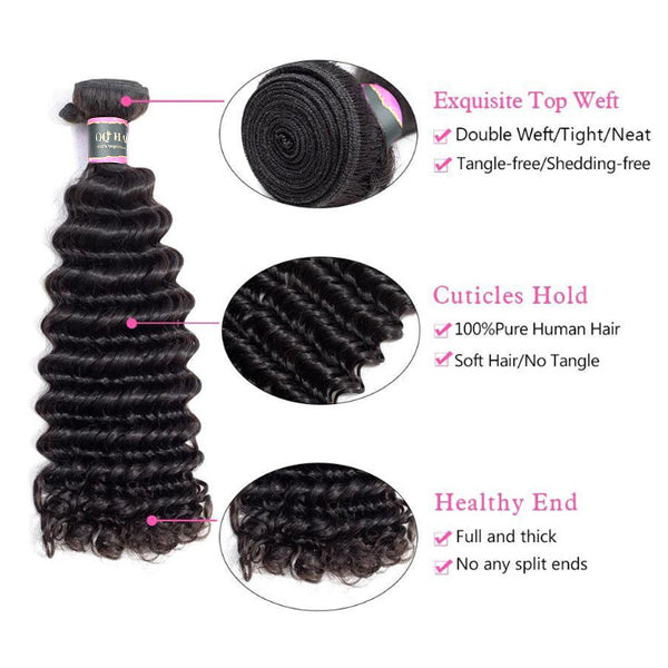Deep Wave Unprocessed Virgin Human Hair Bundles 1/3/4 Pcs
